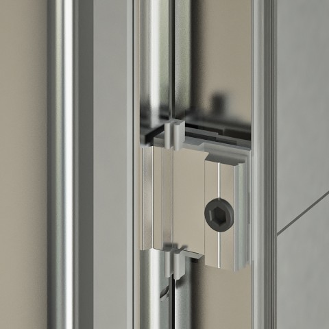 Sprchové dveře se pyšní masivními panty umožňujícími otevírání dveří dovnitř i ven. Jak je to možné? Jak můžete vidět na obrázku, pant je složený ze dvou dílů - vnitřní, pohyblivý díl a vnější, statický díl připevněný ke sklu. Pohyblivou a pevnou část spojuje pant. Když jsou dveře zavřené, můžete si všimnout, že mezi vnitřním a vnějším dílem není žádná mezera - vypadají jako jeden díl. Když jsou dveře otevřené, vnitřní díl se pomocí pantu odklopí od vnějšího pevného dílu a tím vznikne mezi oběma částmi mezera. Díky tomu je umožněn oboustranný pohyb dveří. Právě díky mezeře, která mezi oběma částmi vznikne, nikde nic nezavazí a vy si tak můžete užít bezproblémové otevřenídveří oběma směry.